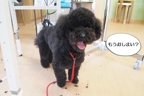 トリミングテーブルから降ろすと、また吠えるかなと心配でしたが、静かに外を見つめていましたよ。