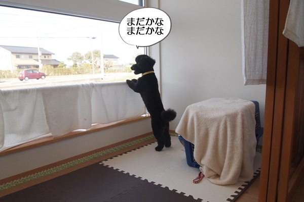 外の車が気になっている様子で、また興奮すると大変なので、正面のカーテンを閉めてカットしました。