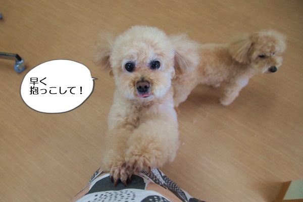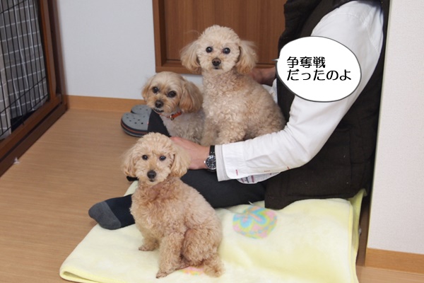 犬使い(主人)に抱っこしてもらいたい仲間たち(わんちゃん)が、争奪戦を繰り広げていました。