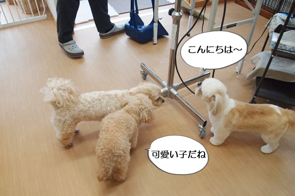 たくさんのわんちゃんに囲まれて、ちょっと押され気味なあられちゃん。