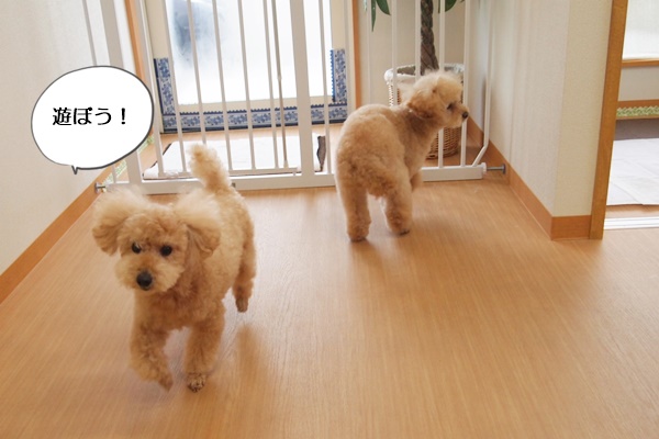 他のわんちゃんが、お家でわんわん吠えたのにビックリして走り出したそうです。