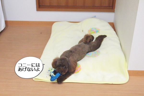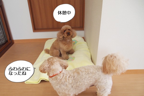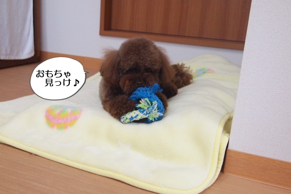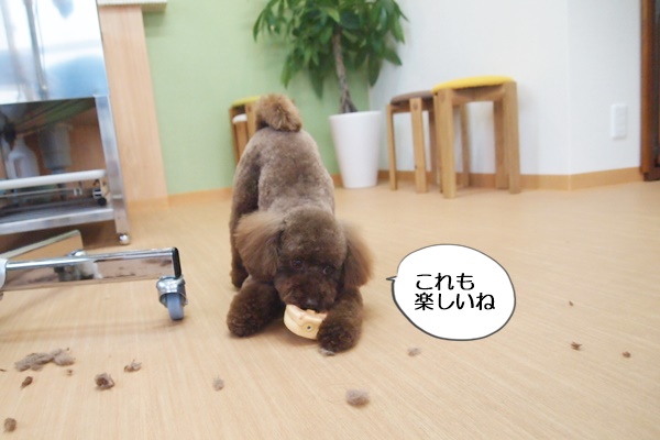 ブロー後の休憩で、早速おもちゃを発見してました。
