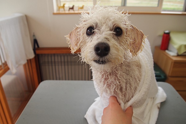 トリミングテーブルの上に乗ると一転、お利口さんなんですよ。