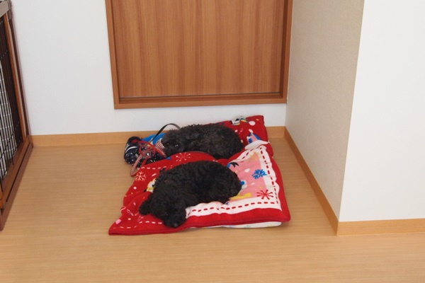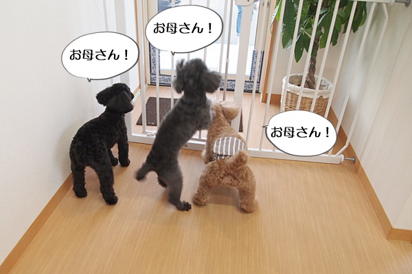 お母さんが大好き過ぎて、お母さんが帰ってしまうと、この世の終わりかのようにクンクン鳴く3人。