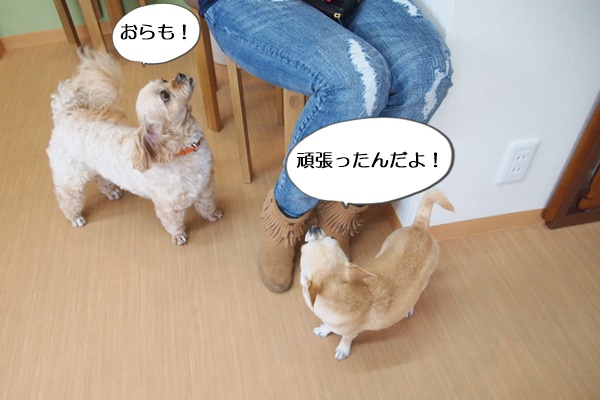 あまぐりちゃんは、お母さんが迎えに来ると、尻尾がキュッと上がりました。