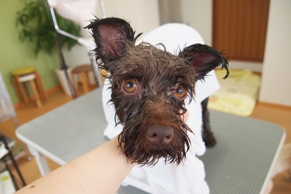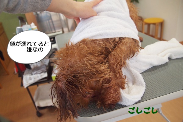 今日は、いつになく、お顔のシャンプーが苦手でした。