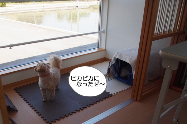 今日は、キャンセルがあり、1頭目と2頭目の間に時間があったので、久々に窓掃除をしました。