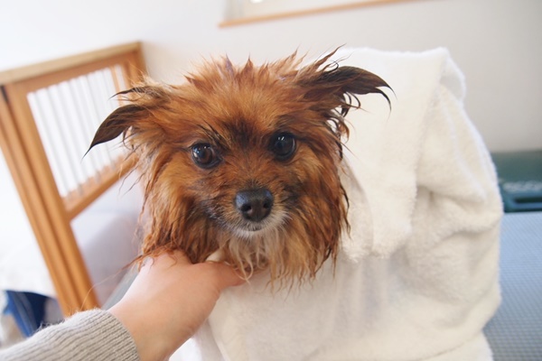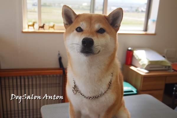 シャンプー前、毛が長くて首輪が見えなかったころんちゃん。