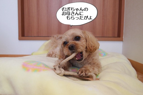 むぎちゃんのお母さんに、新しいおもちゃをいただきました。