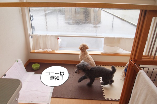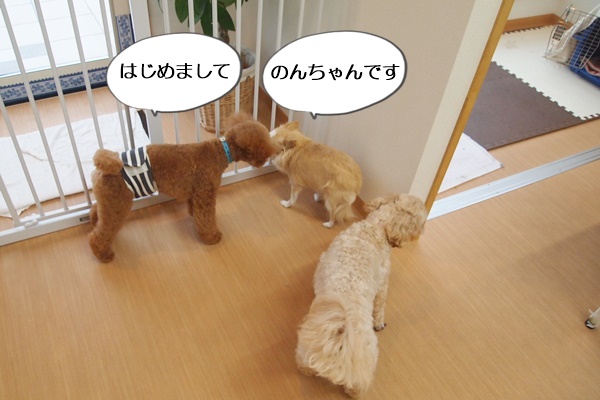 のんちゃんは、コニーのことはちょっと怖いようですが、ポコちゃんなら大丈夫な様子。