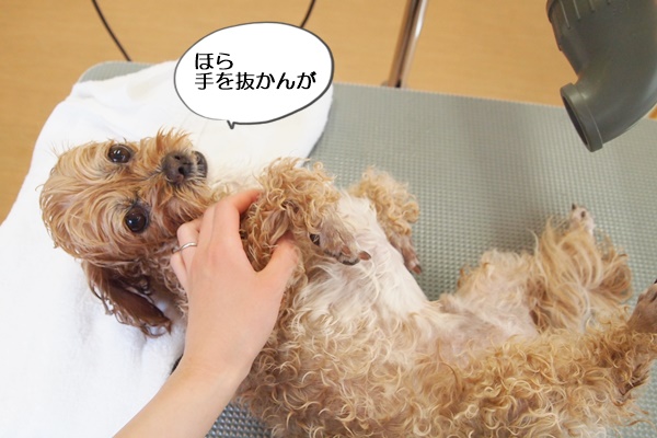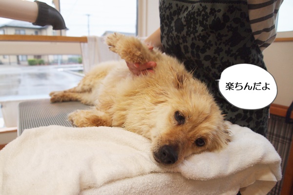 さくらちゃんは、寝かせてブローをさせてくれるので、本当に楽です。