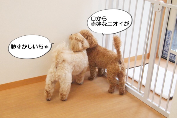 コニーの口から奇妙なニオイがしたのか、顔を集中にニオっています(笑)。