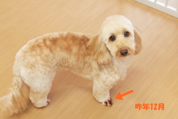 もこちゃんは、初めの頃、肉球の間や指の間の汗がすごく多くて、足先だけ赤くなっていました。