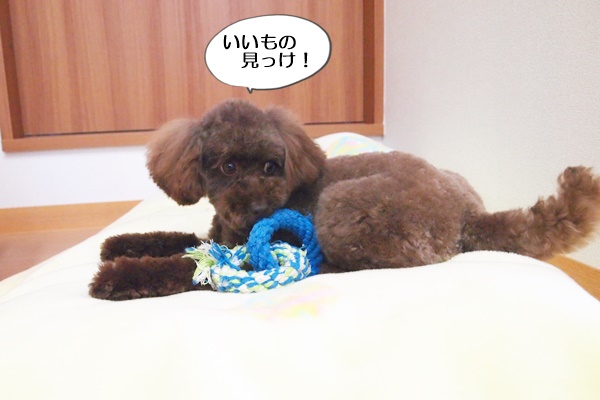 トリミングで疲れているはずなのに、おもちゃで遊ぶのは別なようです。