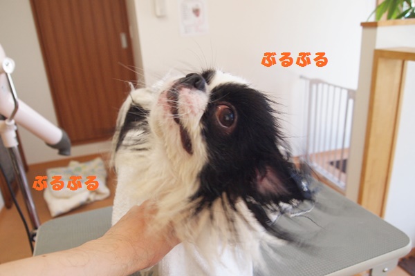 トリミングテーブルの上では、ちょっと落ち着きがないのですが、シャンプー中はお利口さん。