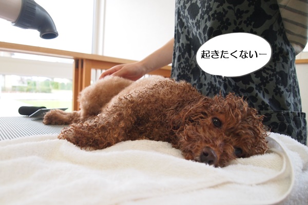 ブローはいつもこんな感じですが、今日は、いつにも増して起きたがらない。