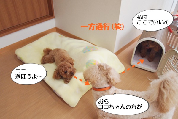 のんちゃんは看板犬コニーと遊びたい、コニーはココちゃんと遊びたい、ココちゃんは1人になりたい…。