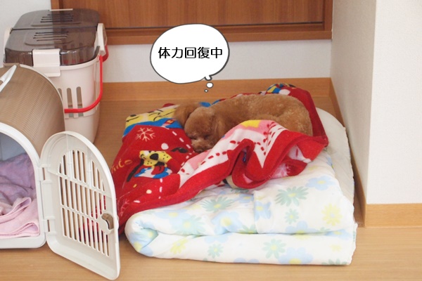 ココちゃん、いつもシャンプー前はハウスから出てこないので、毎回タオルを敷いてあげます。