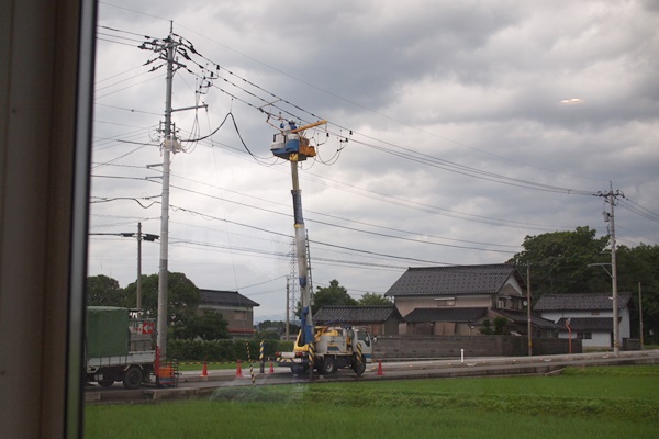 昨日、外を見ると、電線の工事をしている人達がいました。