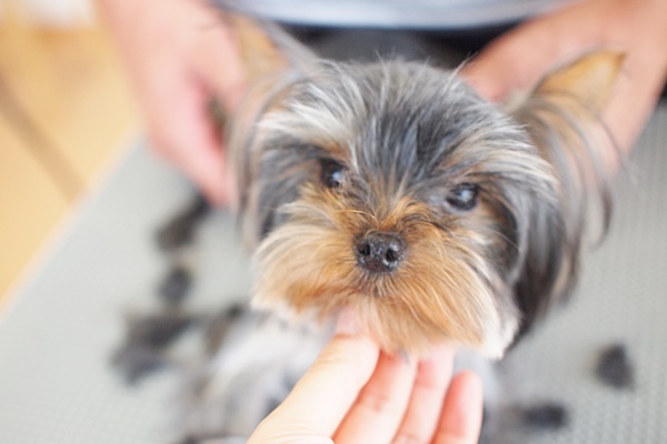 トリミングテーブルの上では、今回も心配だったので、補助付きでトリミング。