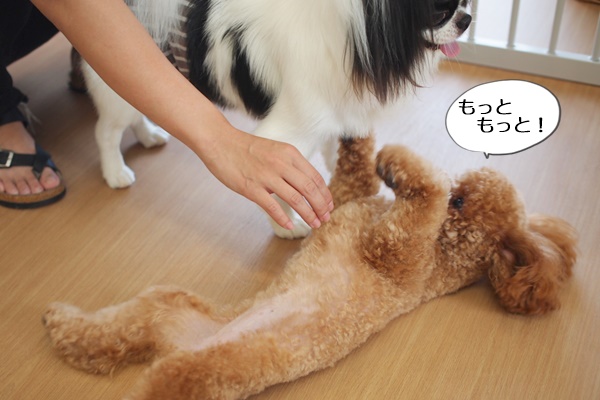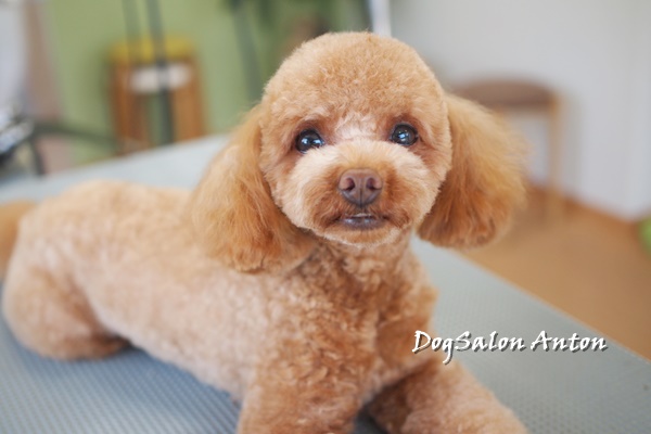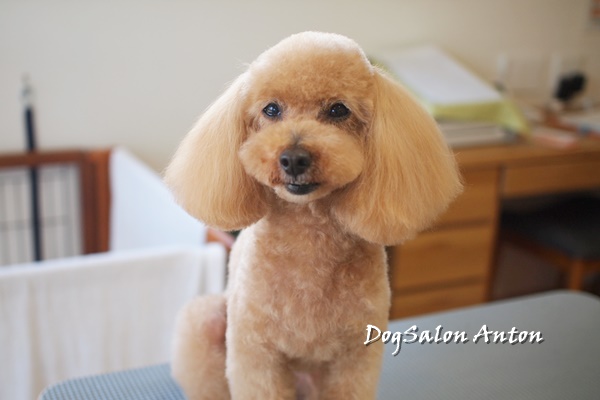 トリミングテーブルの上では、クルクル回るので、ドライヤーの風がまんべんなく当たりました。