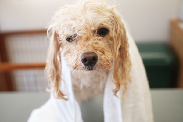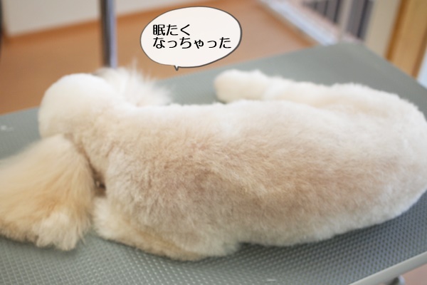 今回は、ちょっと毛玉が多かったので、この体勢でブローできるのは、さくらちゃんにとって楽だったと思います。