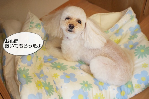 ふかふかの上でずっとお迎えを待っていましたよ。
