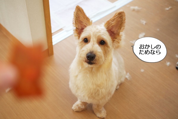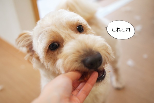 おやつを見せると、見事な「お座り」と、見事な「待て」を披露してくれました、