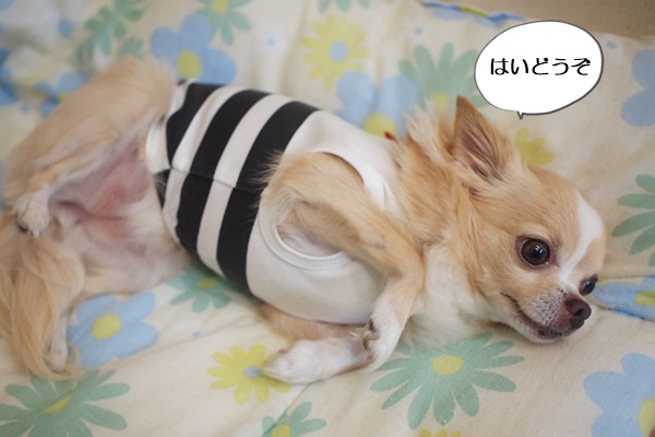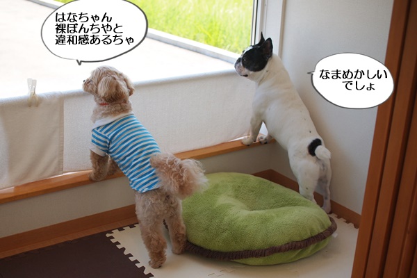 いつも服を着ているわんちゃんが、服を着ていないと、不思議な感覚になります。