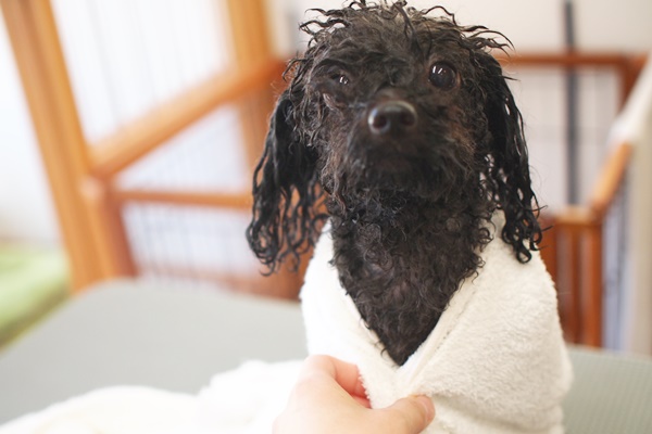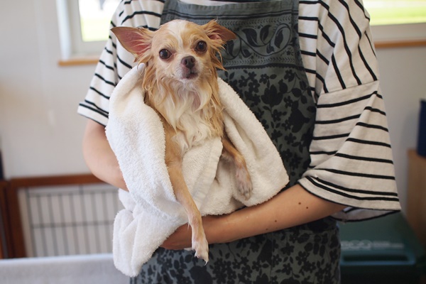はぁはぁ言っていたので、落ち着いてから、と思いましたが、一向に落ち着く気配が無いので、そのままシャンプーに。