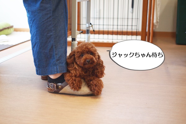 ジャックちゃんのお手入れ中に、主人が来ました。