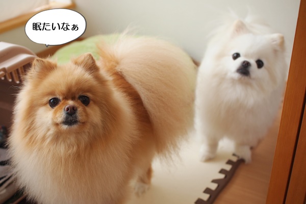 ポメラニアンのモコちゃんと、ポメチワのソラちゃんです。