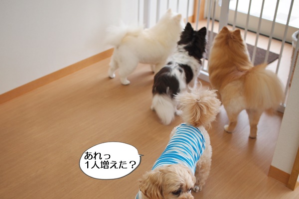 なぜか、他のわんちゃんがそこまで得意でないライトちゃんの周りに犬だらけ。