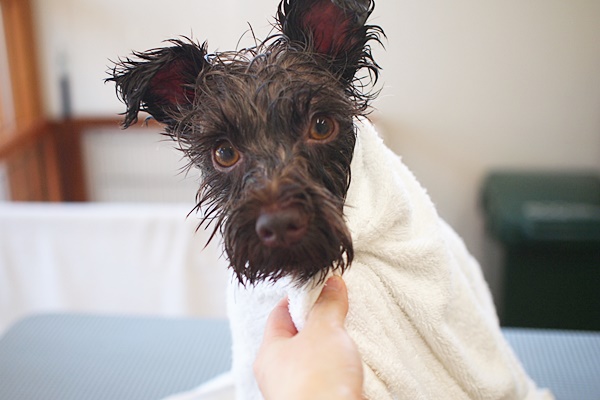 梓姫ちゃんは、ミニチュアシュナウザーの中でも小さい方なので、乾くのも早い早い。