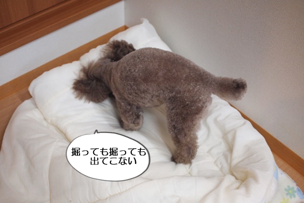 座布団と布団を一生懸命掘って、ぐるぐる回って、自分の満足のいくポジションを探します。