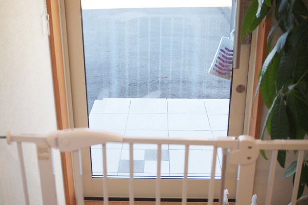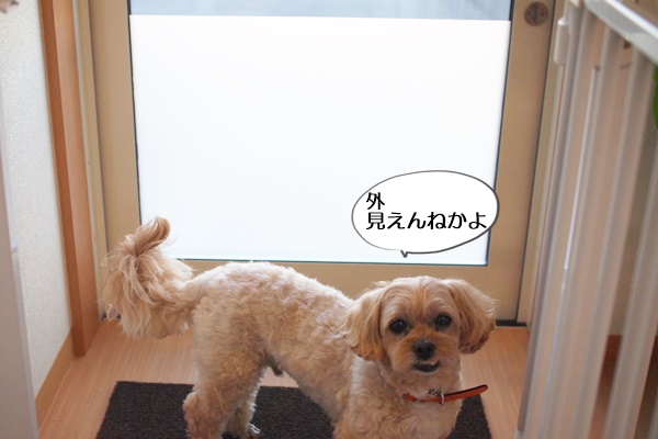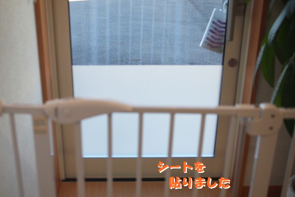 少しでも吠えるのを軽減するために、目隠しシートを貼ってみました。