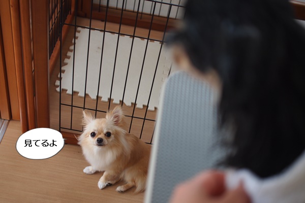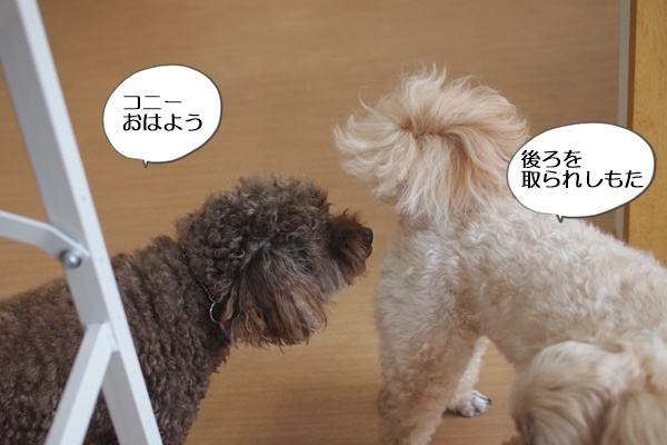 ティアラちゃんのシャンプー後、シンバちゃんとコニーが下からずっと見上げてるんです。
