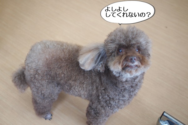その後も、シンバちゃんはずっとトリミングテーブルの下で待っていましたよ。
