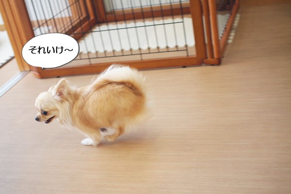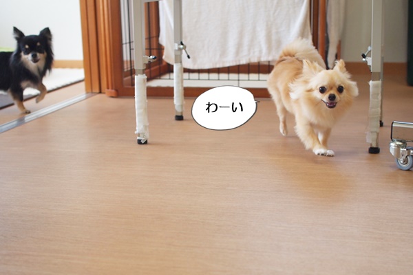 シンバちゃんが、楽しそうに駆け回るもんだから、テーブルやドライヤーをどけてもっと走りやすくしました。