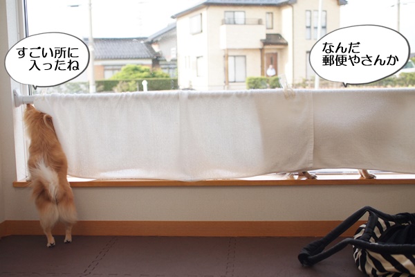 お迎えの家に来た郵便屋さんを見に行ったようです。
