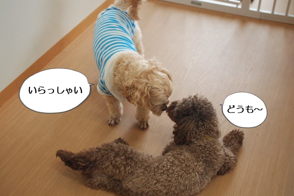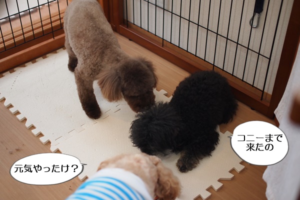 萌華ちゃんとコニーからニオイを嗅がれていました。