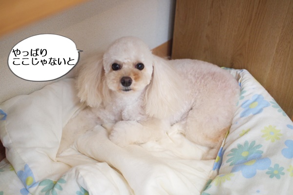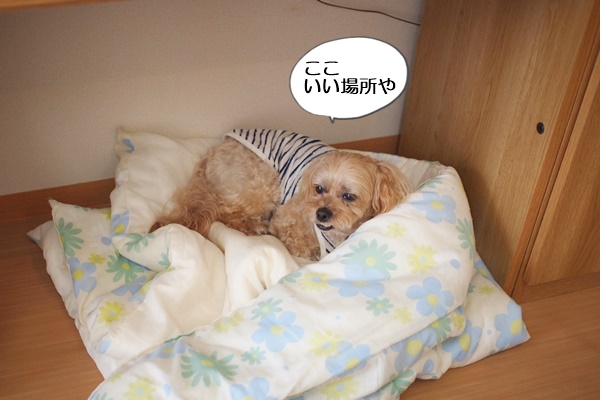 さくらちゃんは、いつも机の下に行くので、休憩の時にすぐ休めるようにと布団を敷きました。