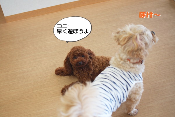トリミングで疲れているはずなのに、終わってからは元気いっぱいに遊ぶココちゃん。