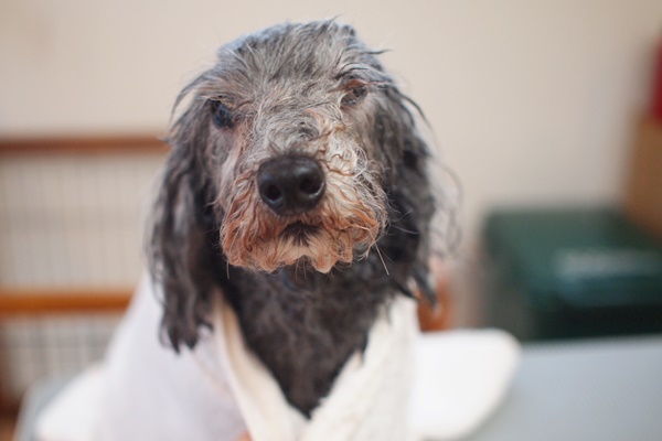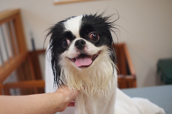 水嫌いのむぎちゃんは、シャンプーと格闘して、ようやくさっぱり。