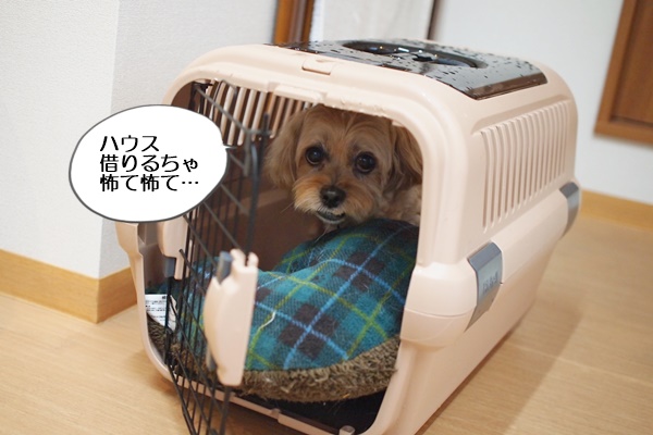 コニーは、怖さのあまり、獅子丸ちゃんのハウスを借りたようです。