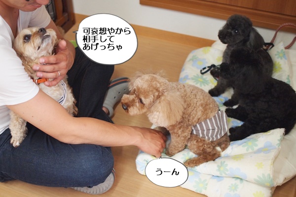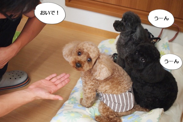 トイプードル一家のレアンちゃん&アランちゃん&キィーちゃんです。