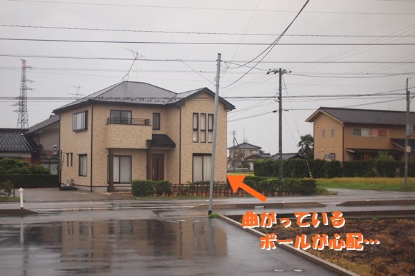 我が家は2年前に建ちましたが、建った当初から電気の引き込みポールが曲がっています。