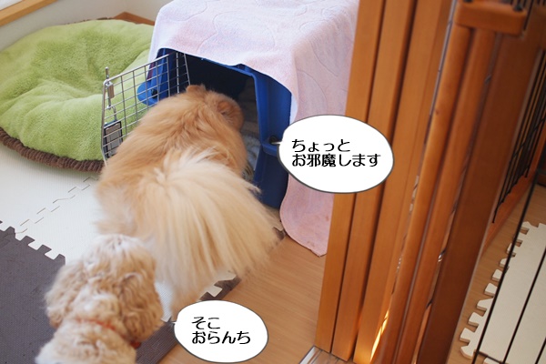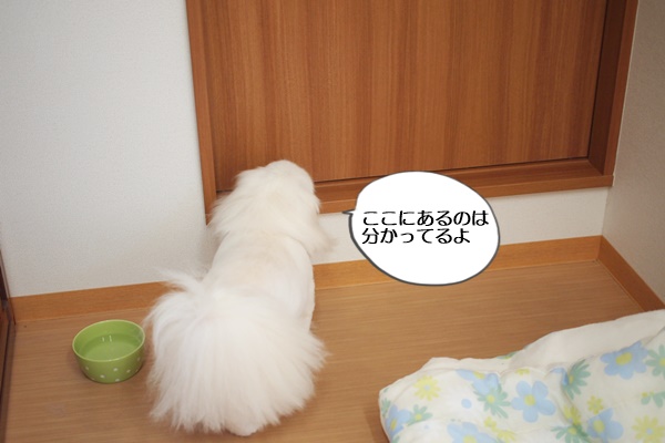 まるちゃんはハウスがあるとそれしか見ないので、終わるまでは見えない所に隠します。