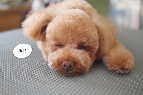 のんちゃんは、カットに疲れたのか寝そうになっていました。