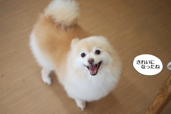 人懐っこいポメちゃんは、カット中も私の側から離れません。